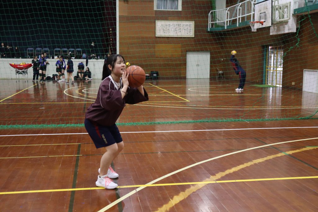バスケットボール部は、少ない人数ですが大会1回戦に勝利することを目標に日々頑張っています。今年度はリーグ戦にも参加し、練習試合を含め毎月1,2回は他校との試合を行いました。試合経験がたくさん積めるので日々の成長をすぐに感じられます。興味がある人はぜひ見学にきてください。
